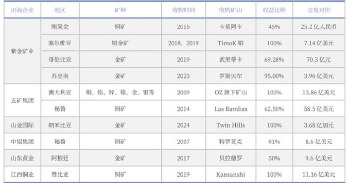在全球化布局方面,中国企业主动出击弥补国内资源短板,是这一轮黄金牛市中最大的变化。比如,紫金矿业先后收购哥伦比亚武里蒂卡金矿、苏里南罗斯贝尔金矿等优质资产;山金国际 2024 年收购纳米比亚 Twin Hills 金矿,万国黄金收购所罗门群岛金岭金矿等等。